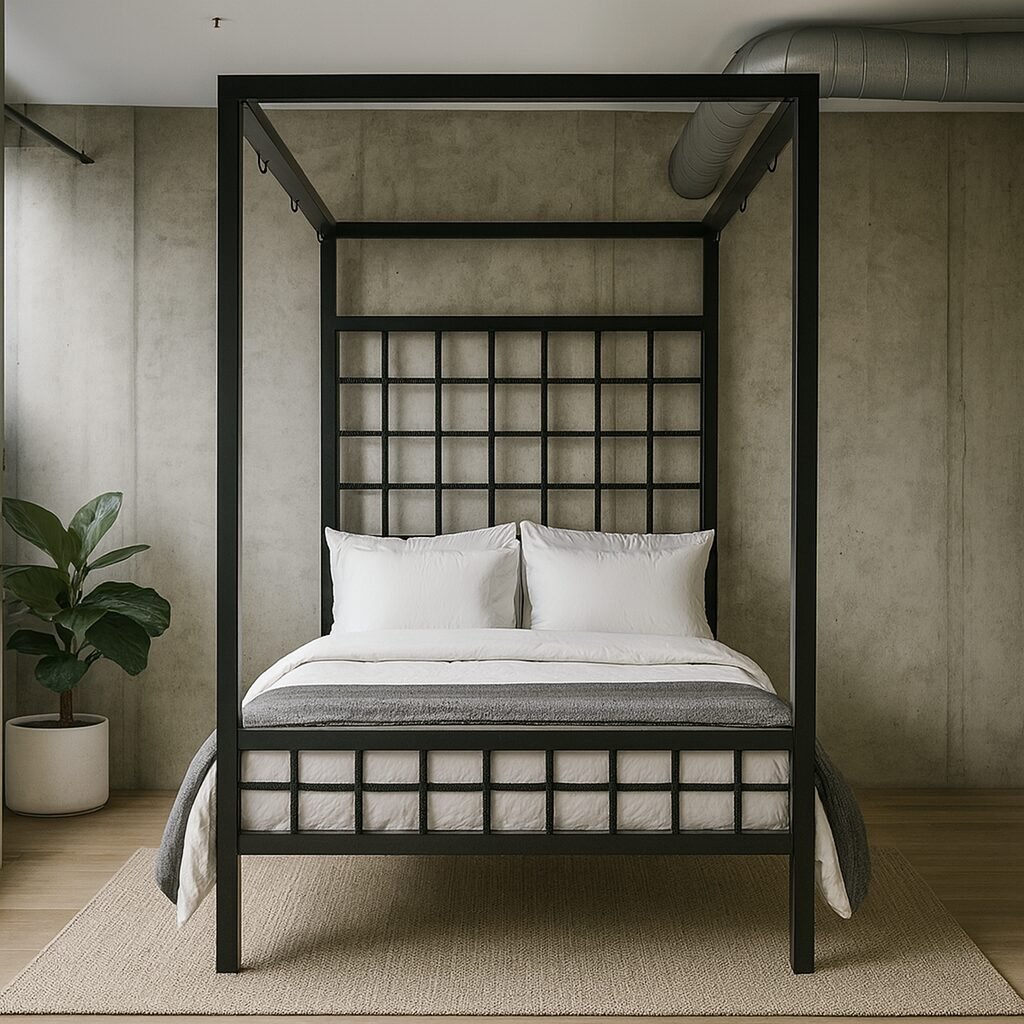 Elevate your bedroom with our Four Poster BDSM Bondage bed featuring a rebar headboard. Perfect for adventurous lovers, its minimalistic and industrial design enhances your rope play and creates a unique ambience. Customisable finishes and optional St. Andrew’s Cross make this bed a versatile and striking addition to your play space.